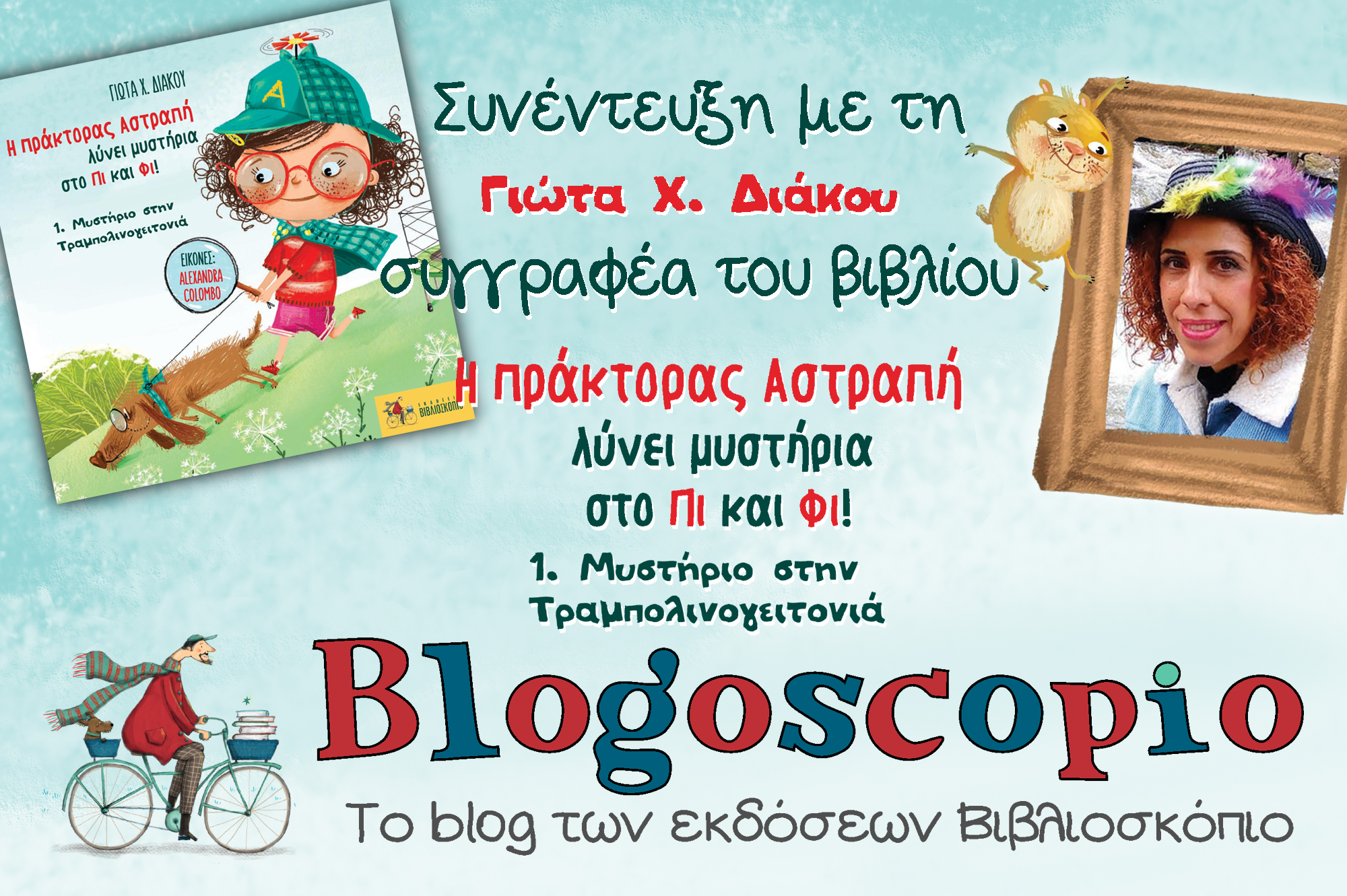 Το Blogoscopio συνάντησε τη συγγραφέα και δασκάλα Γιώτα Χ. Διάκου, η οποία έχει γράψει το βιβλίο Η πράκτορας Αστραπή λύνει μυστήρια στο Πι και Φι! 1. Μυστήριο στην Τραμπολινογειτονιά.